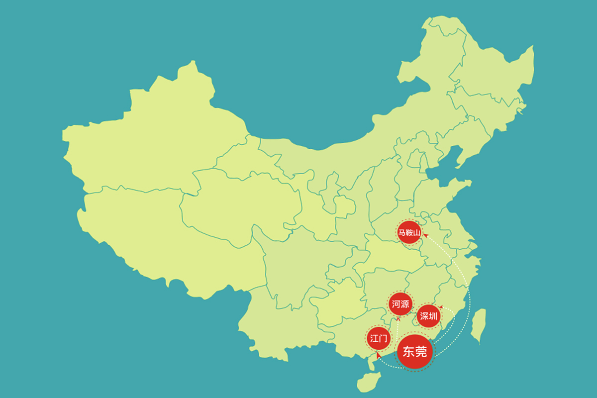 集團(tuán)擁有東莞、江門(mén)、河源、深圳、馬鞍山等5個(gè)生產(chǎn)基地,公司的生產(chǎn)、倉(cāng)庫(kù)、辦公及宿舍等占地面積超過(guò)200畝,從業(yè)人員達(dá)1000余人。